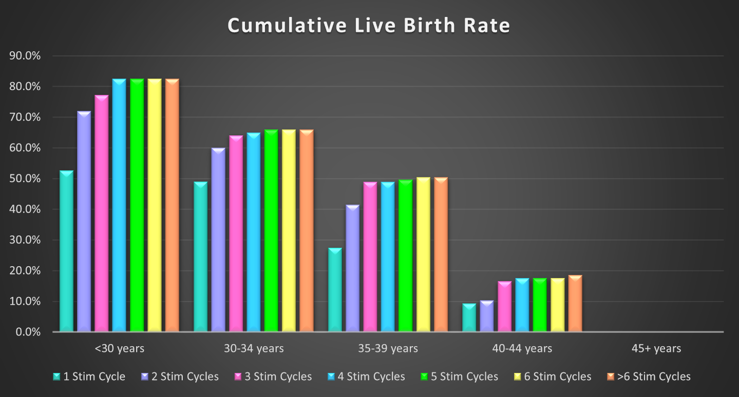 The most important measure of success is to determine your chances of having a baby after each completed stimulated IVF cycle. With each completed stimulated IVF cycle eggs are collected and any resulting embryos from that cycle are used either fresh or frozen in subsequent transfer only cycles. The reality is that most people regardless of their age will not have a baby after their first cycle. It is important for all those wishing to engage in IVF treatment to be aware of this and be prepared for the reality of needing to engage in multiple cycles. Connect IVF has worked hard to make IVF treatment as affordable as possible for the reality that most will require multiple cycles.